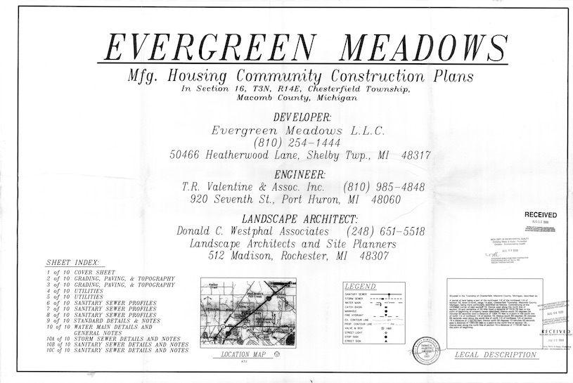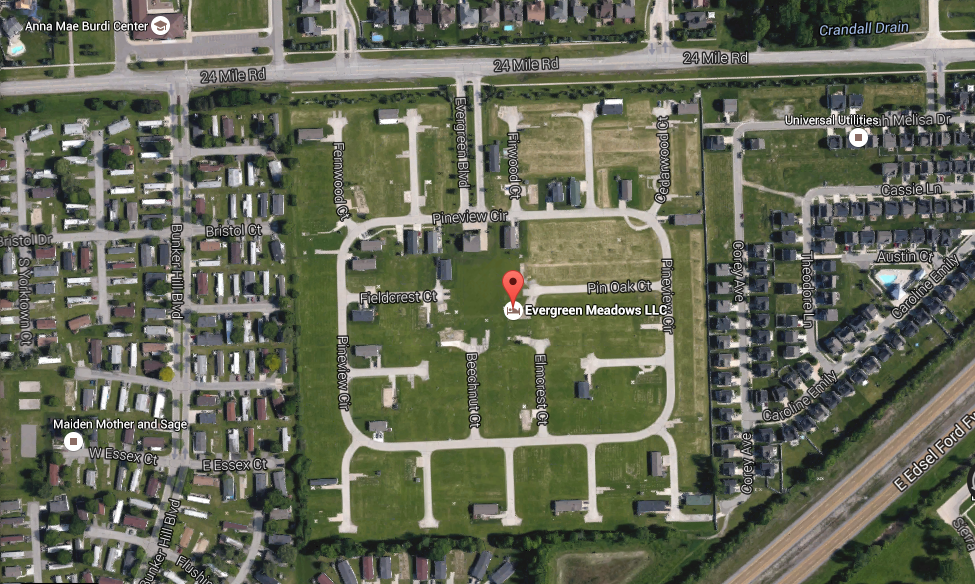 Attention all park owners and investors, EZ Homes is proudly marketing the beautiful mobile home community Evergreen Meadows located in Chesterfield Twp MI. This incredible 36 acre, 214 family site mobile home community is the crown jewel of the area. It was built in 2002 and sits in the heart of 24 mile road / I-94 and Gratiot corridor. It is nestled between some very nice housing subdivisions. It offers up to date / state of the art municipal water and sewer systems and all the electrical / gas lines are installed. As said earlier the park has 214 sites, 25 of which are filled and occupied. There are 11 sites that are designated for single wides and the rest are designed for double wides. Low lot rent at $350 per month offers an incredible value for the region where lot rents are typically in the mid to upper $450-490 price range.